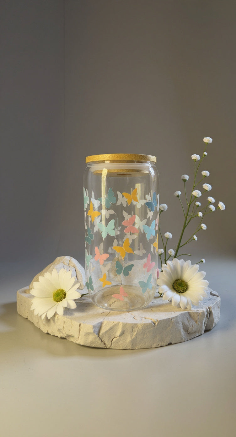 Blush Wings- 16oz Glass Tumber with Lid, Straw & Cleaner