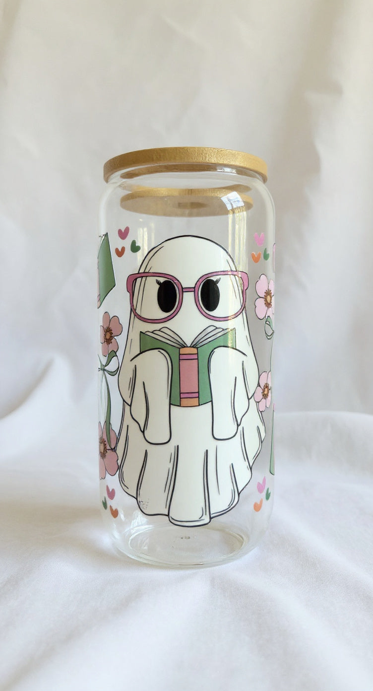 Bookish Boo - 16oz Glass Tumber with Lid, Straw & Cleaner