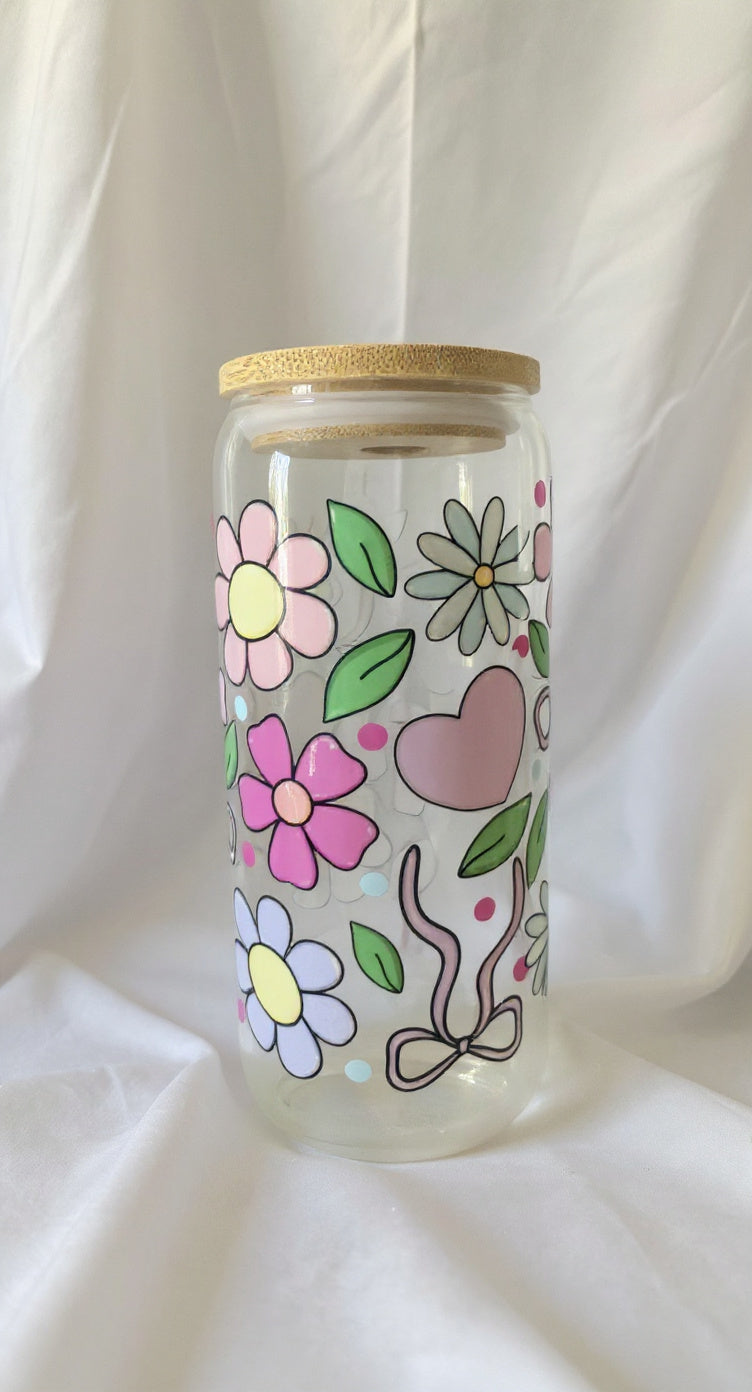 Flower Power 16oz Glass Tumbler with Lid, Straw & Cleaner