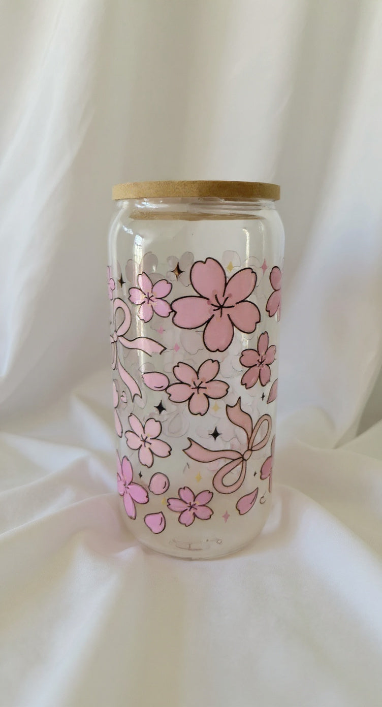 Pink Daze 16oz Glass Tumbler with Lid, Straw & Cleaner