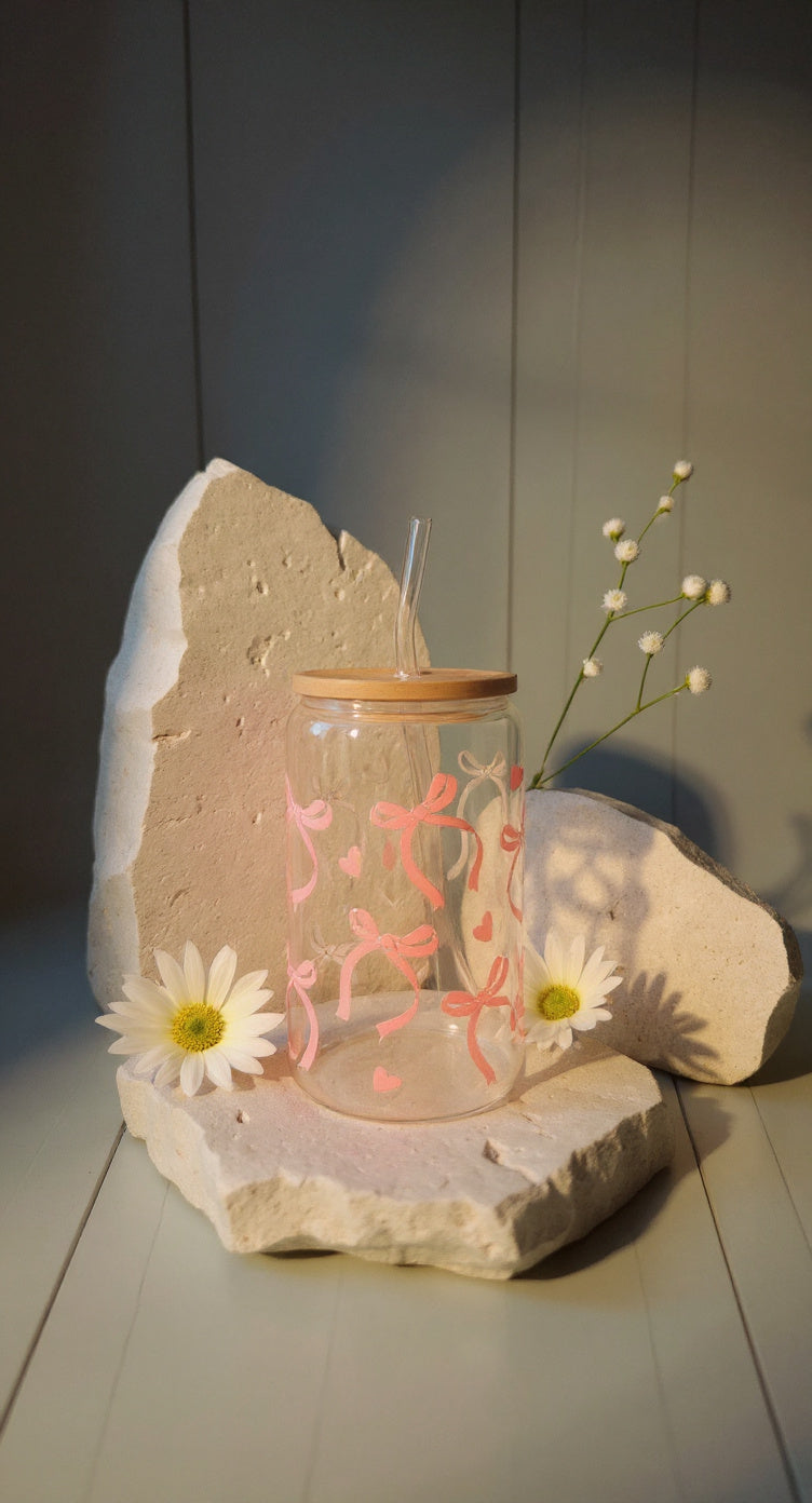 Sweetheart Bows - 16oz Glasses with lids, straw & cleaner